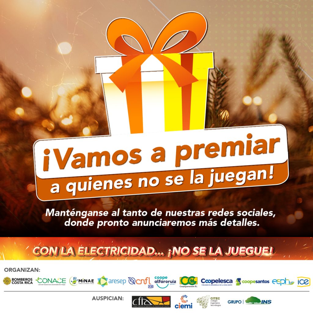 Con la electricidad… ¡no se la juegue! es una iniciativa conjunta entre el Ministerio de Ambiente y Energía (MINAE), las empresas eléctricas, ARESEP y el Benemérito Cuerpo de Bomberos que tiene por objetivo sensibilizar, informar y generar acción en la población para contribuir en la disminución de los impactos y frecuencia de los incidentes por fallos eléctricos en el sector residencial.