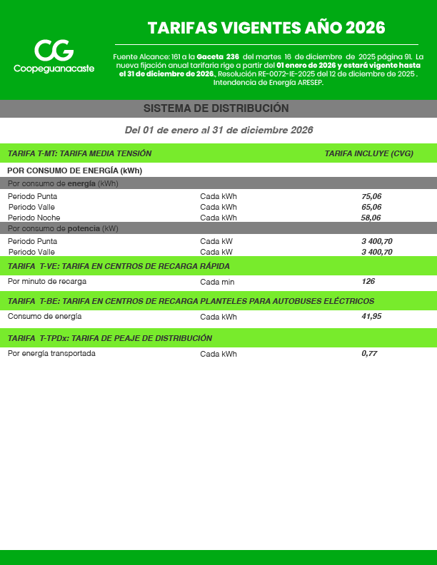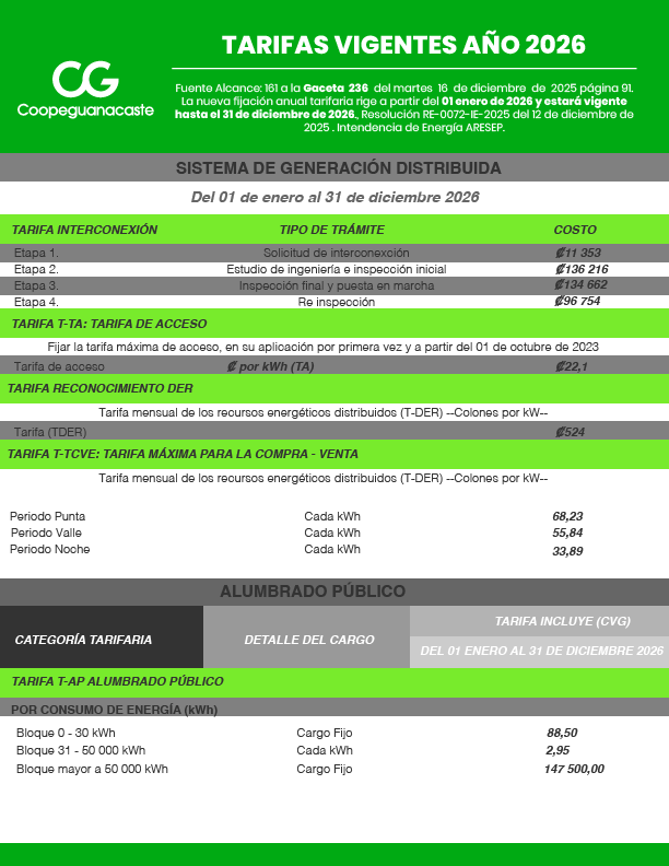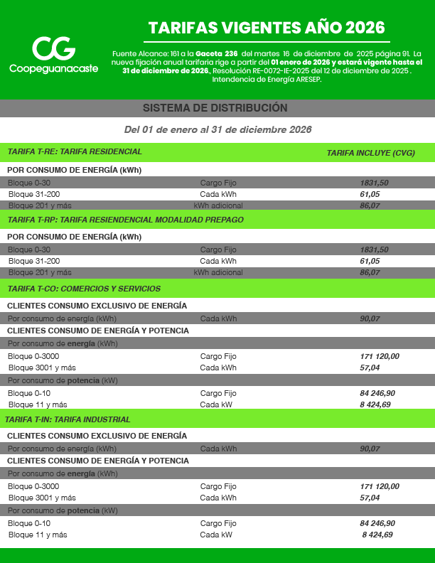 Tarifas del Servicio Eléctrico de Coopeguanacaste, R.L.